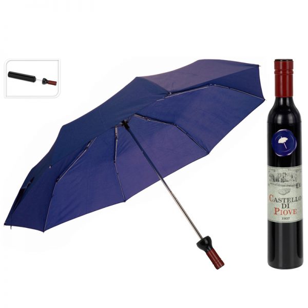Dit is een paraplu in wijnflesverpakking blauw voor een grappig origineel cadeau. In deze kunststof wijnfles zit een paraplu met een diameter van de 100 centimeter. De flessenhals dient tevens als handvat voor de paraplu. In de dop van de hals zit een lus verstopt die je om je pols kan doen. De wijnfles zelf is 5 bij 31 centimeter. De paraplu in wijnflesverpakking is verkrijgbaar in de kleuren blauw, groen, rood en zwart. Wil je eens een keer wat anders geven dan is dit jouw cadeau of gebruik hem zelf en verstop de paraplu in een wijnfles.